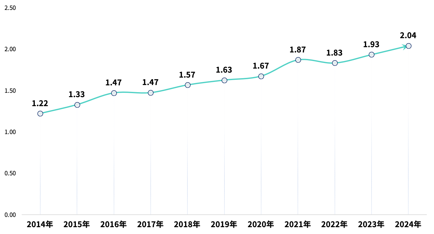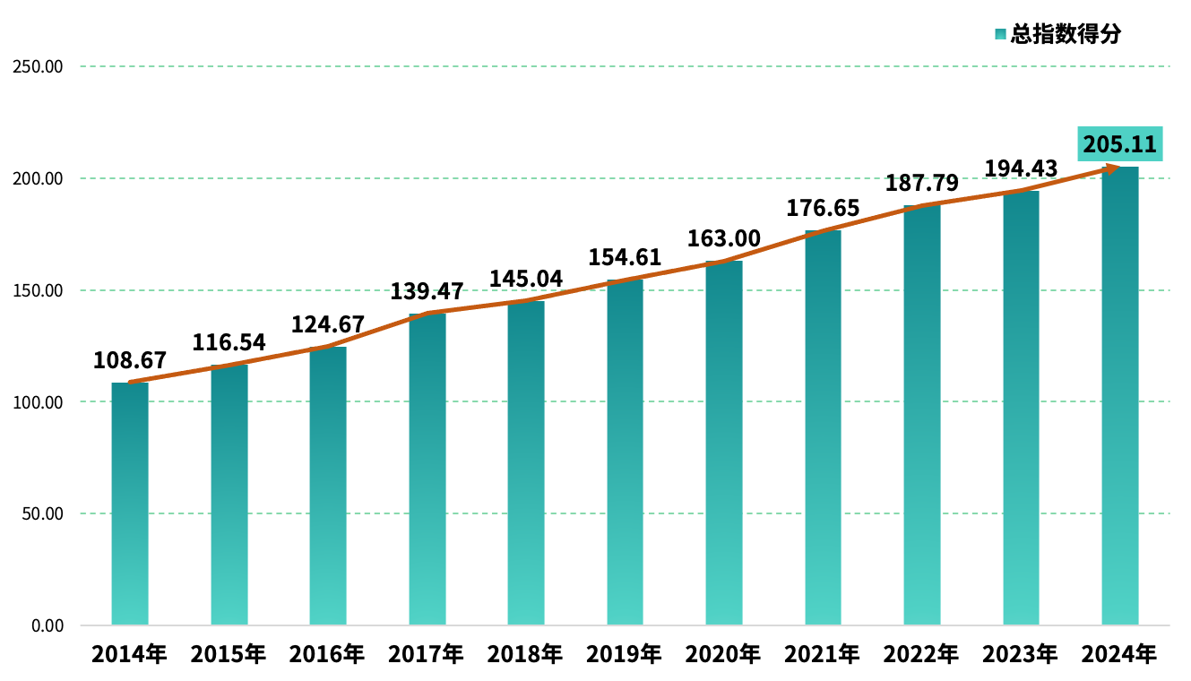 “首科指数2025”显示,总指数得分为205.11分,2014-2024年整体增幅达88.75%,年均增长9.64分。