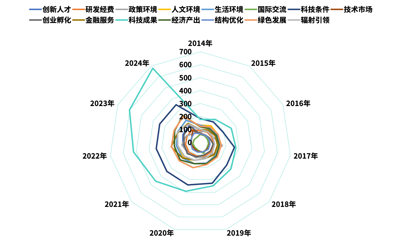 图4. 2014-2024年首都科技创新发展指数二级指标表现雷达图