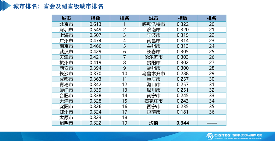 2018年12月8日,由首都科技发展战略研究院主办的 “2019首科新年论坛——创新驱动首都高质量发展”在京召开。本次论坛上首都科技发展战略研究院发布了《中国城市科技创新发展报告2018》,院长关成华教授介绍了报告的写作背景、基本框架、指标体系、测度结果、研究发现和启示建议,在我国289个城市的科技创新指数排名中,北京、深圳、上海、广州、南京、武汉、苏州、天津、杭州、西安排名前10。